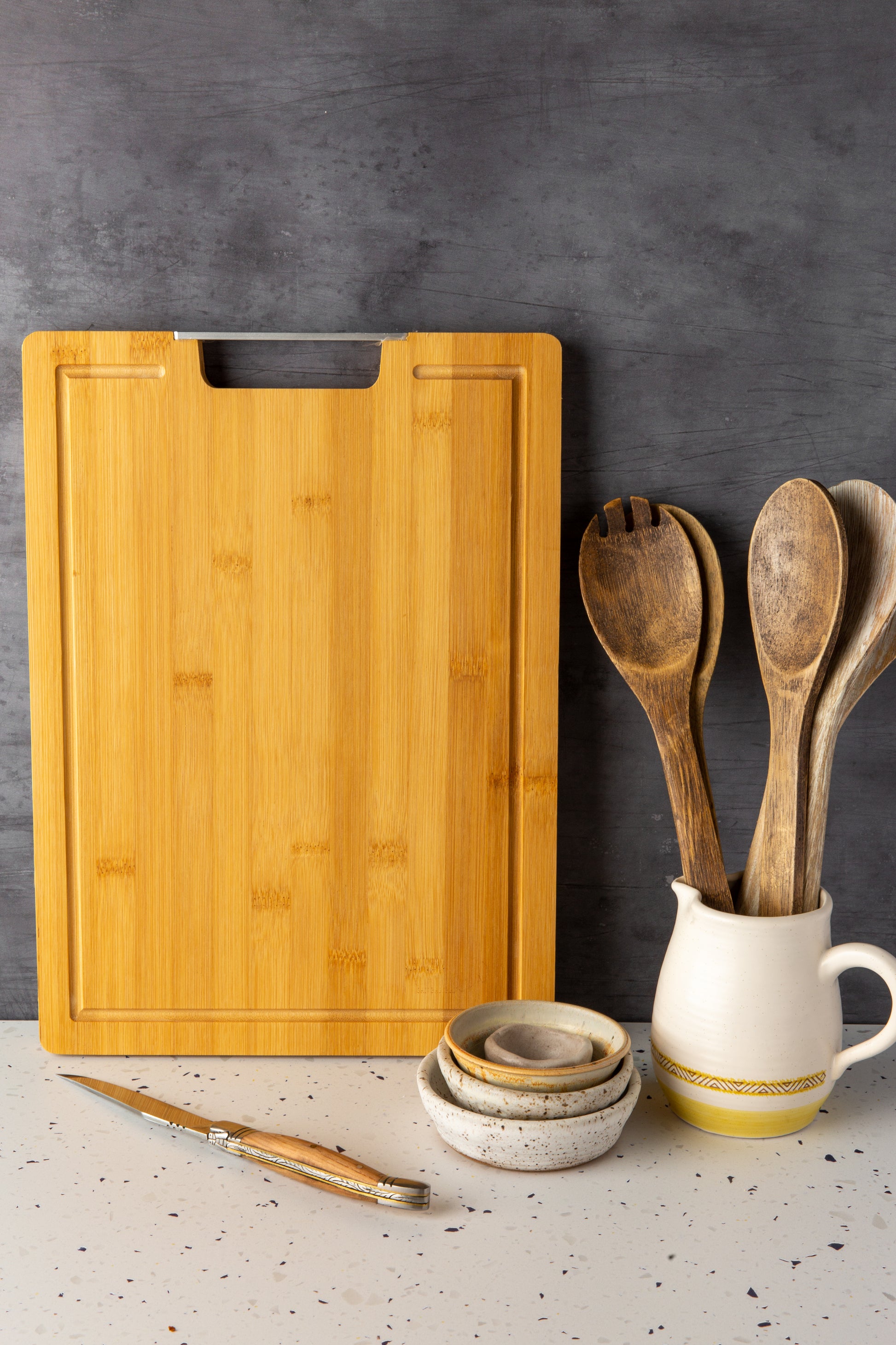 Introducing our Personalized Medium Bamboo Cutting Board with a Stylish Metal Handle. This versatile cutting board is designed to make food prep a breeze and elevate your culinary creations. The smooth and easy-to-clean bamboo surface adds a touch of elegance to your kitchen, while the sturdy metal handle offers both functionality and a modern aesthetic. Perfect for creating beautiful food presentations, this cutting board is a must-have for any kitchen.